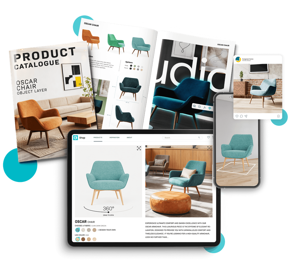 Transform your online display with interactive 3D modules and photorealistic imagery. Captivate customers by letting them visualize your furniture in their spaces, boosting confidence and driving increased sales.